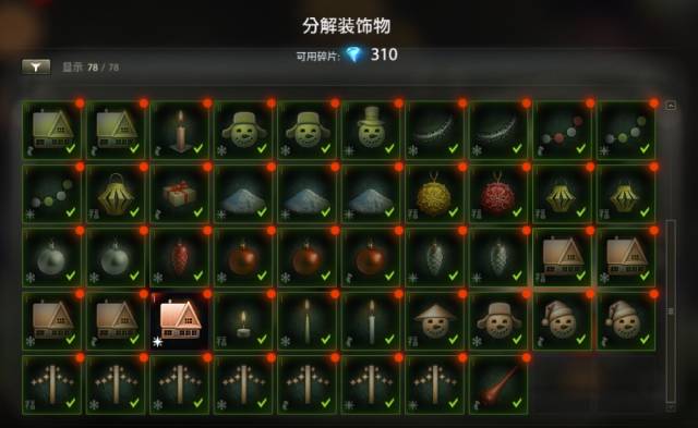 右下角可以切换分解模式和合成模式。由于V级装饰物的价值很高,所以III级以下的装饰物可以考虑直接全部分解掉。IV级装饰物可以在任务前期用来维持奖励加成。