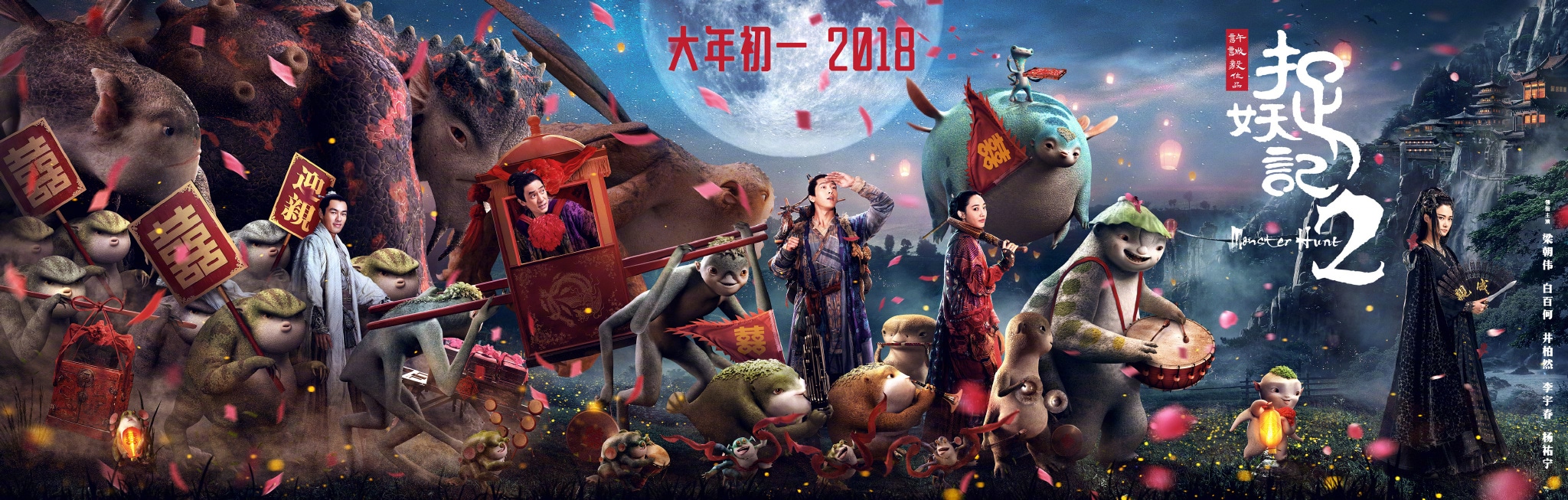 由许诚毅执导,白百何、井柏然、梁朝伟、李宇春、杨佑宁、柳岩等联袂主演的玄幻电影《捉妖记2(Monster Hunt 2)》日前曝光“娶亲”版海报,迎亲队伍阵容强大,胡巴要把屠四谷娶回家。
