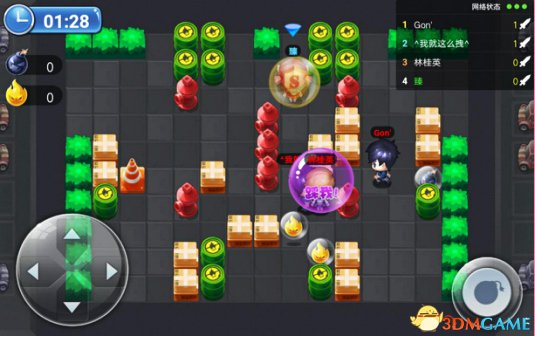 在混战模式中,为时2分钟的战局里4位玩家将在同一个地图中“互相伤害”。《炸弹学院》一局时间控制在2分钟内,玩家被炸死后经过一定冷却时间然后复活,在对局时间结束后,拿到人头最多的玩家便可以荣登榜首了。