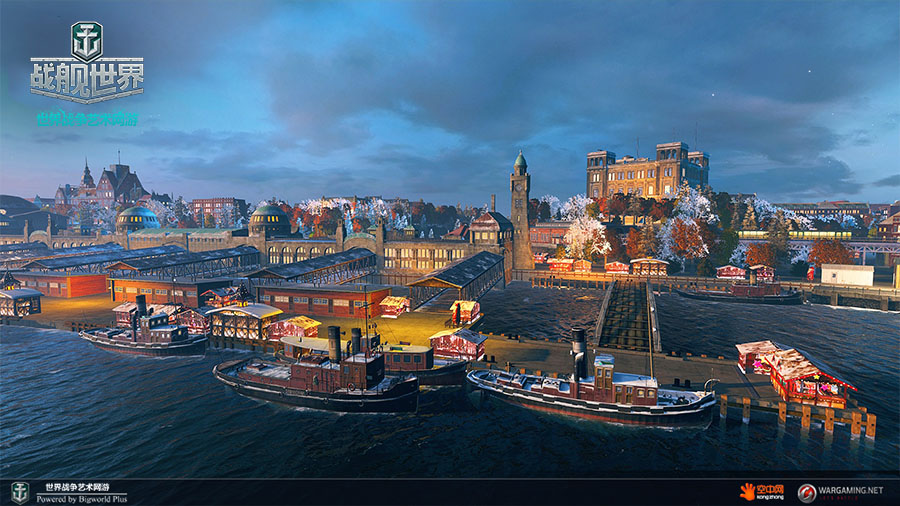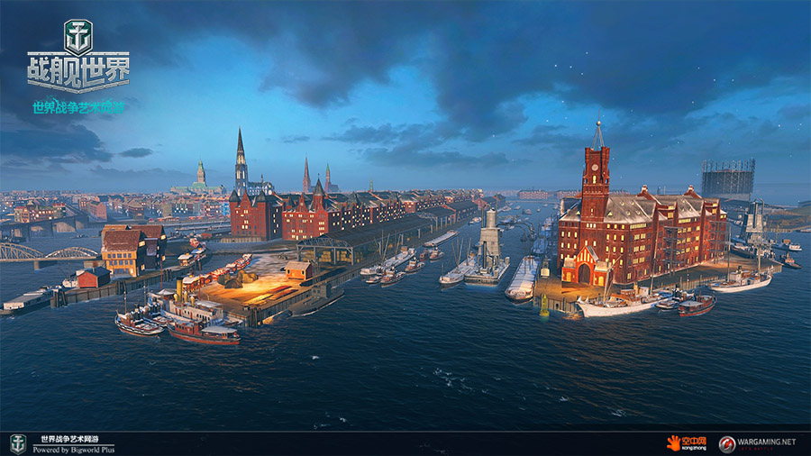 历史悠久的汉堡是D国第二大城市,同时也是D国最重要的海港和外贸中心。《战舰世界》的研发人员在游戏中重现此港口时更专注于二十世纪30年代至50年代这段时期。因此,游戏中的建筑都属于这一时期,有助于更真实的重现这座城市的历史。