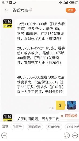 网售代玩服务花费数十元可刷分