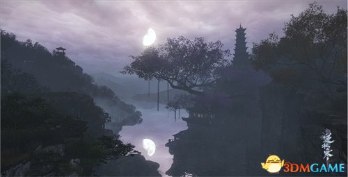 明月当空,湖面雾气乍起,较强的月光和孱弱的灯笼烛光一起在湖面反射,并被林叶间的雾气散射,整个场景迷茫着一种迷人的梦幻感。夜色清冷如斯,适宜邀三五好友,踏歌而行。