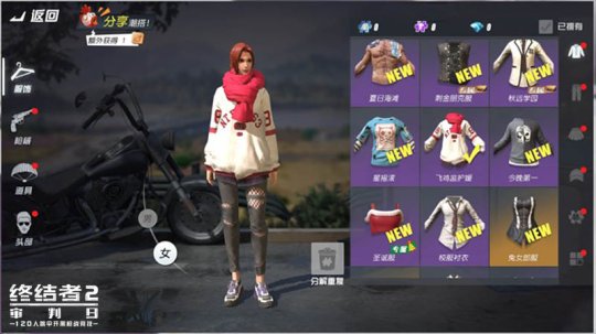 在《终结者2:审判日》中,玩家不仅可以获得畅快激爽的竞技体验,同时还能够接触到充满奇思妙想的游戏时尚世界。更新后商城货架将再次大量上新,潮流套装、奇趣背包、搞笑头盔应有尽有,为玩家提供更多的搭配空间。此外还有累计充值送套装的惊喜回馈开启,助力玩家走上“鸡”生巅峰。