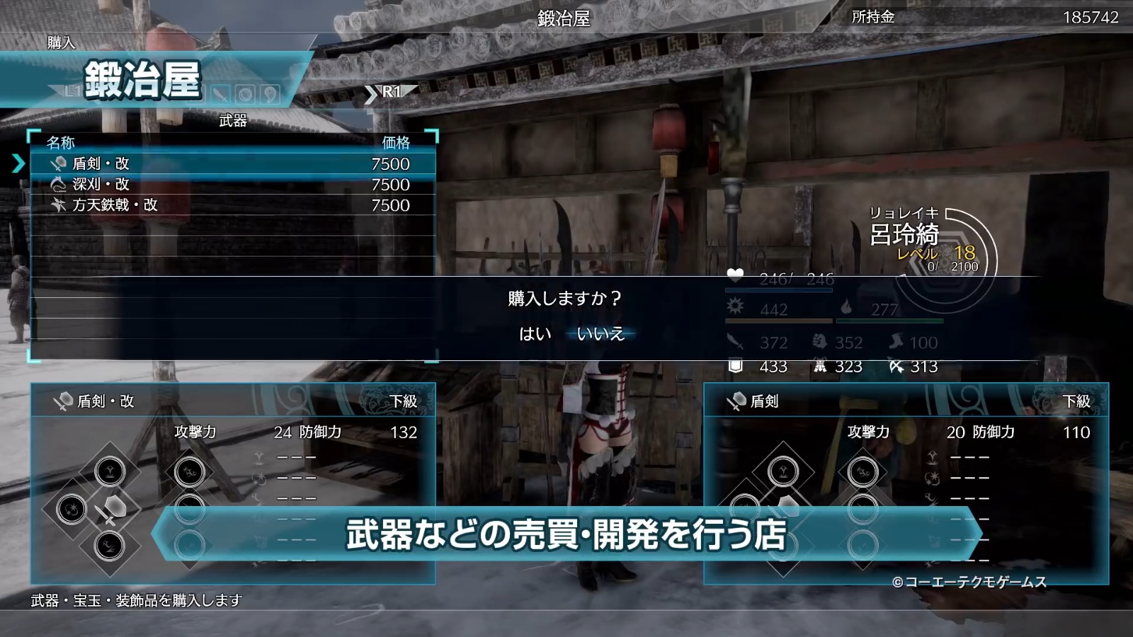 视频还展示了吕玲绮在下邳城中的活动。锻冶屋可以购买、制作武器,制作宝玉、装饰品等内容。相关资料可以参考此前的报道《真三国无双8》探索、采集情报公开。