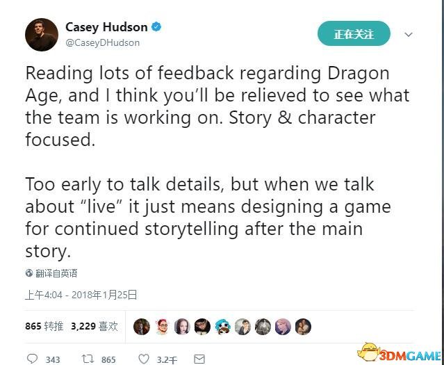 《龙腾世纪》新作正在开发中,昨天在报道时官方表示将会加入“实时(Live)”要素。这里的实时到底是什么意思?BioWare总监Casey Hudson在Twitter上进行了解释。
