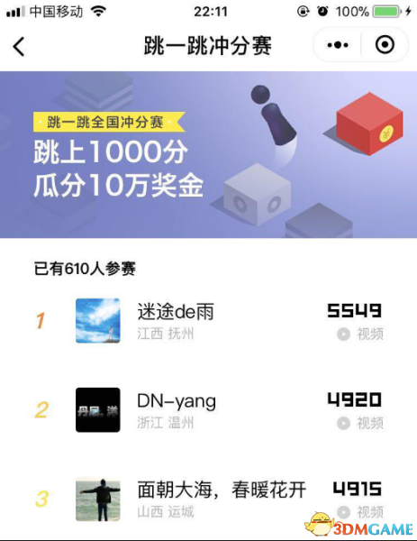 微信在小程序“微信电竞”中推出了“跳一跳”全国冲分赛,超过1000分的玩家将能够瓜分10万元奖金。“跳一跳”电竞更是指日可待了?