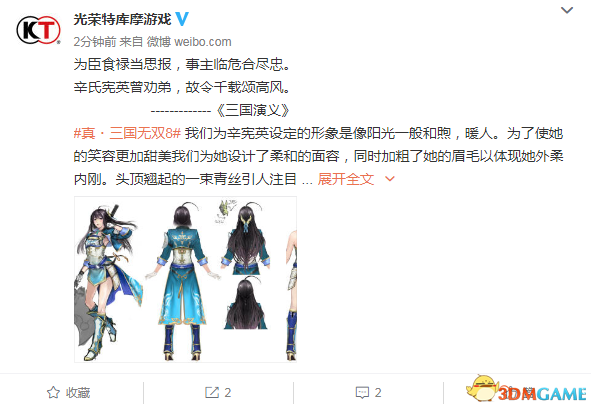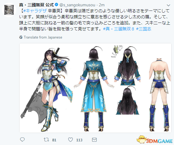 真三国无双8官方推特和光荣特库摩游戏官方微博2分钟前同时发布了《真三国无双8》辛宪英的人设图,从图片来看辛宪英是一名美少女,加粗的眉毛体现了辛宪英外柔内刚的气质,人物设定盔甲略显单薄,从背后设定图可以看出胸甲就像肚兜,裸露的香肩非常迷人。下面一起看看具体内容。