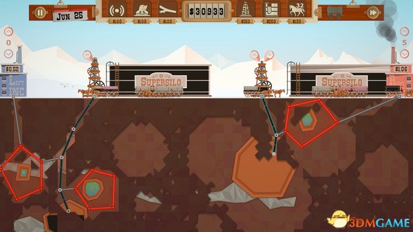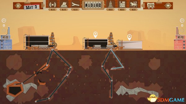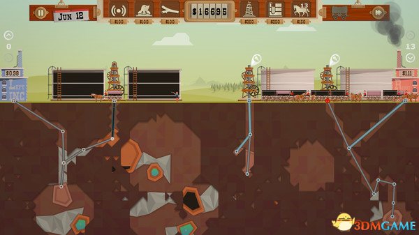 在小镇拍卖会上租土地,寻找石油。建造钻井设备,创建一个高效的管道网络,挖出石油并将它们存储在筒仓中。在最佳时间出售石油,使利润最大化。而后,购买镇上的基本升级以应付岩石、天然气和冰块。在竞标中获得比竞争对手更多的股份,成为新市长。
