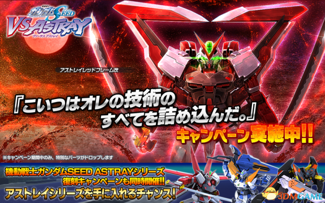 2018年2月1日活动开启期间,最新强力机体来自《高达SEED ASTRAY》的歧途红色高达等3部机体将追加参战,挑战事件任务,歧途红色高达等3部机体的开发设计图和强化的零件以及图纸均可掉落,喜欢的玩家不要错过了。