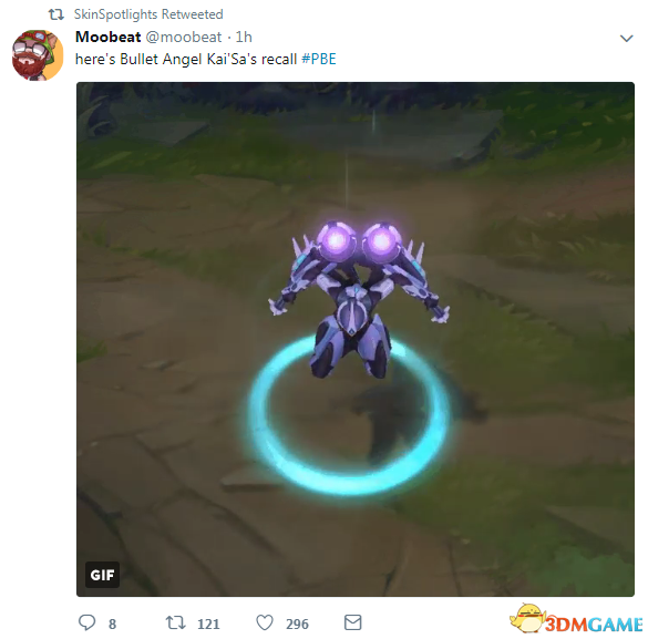 国外玩家Moobeat日前为我们分享了《LOL》新英雄虚空之女凯莎新皮肤“子弹天使(Bullet Angel)”回城动画,这款皮肤科技感十足,回城特效如果做成折跃闪回可能会更好点。