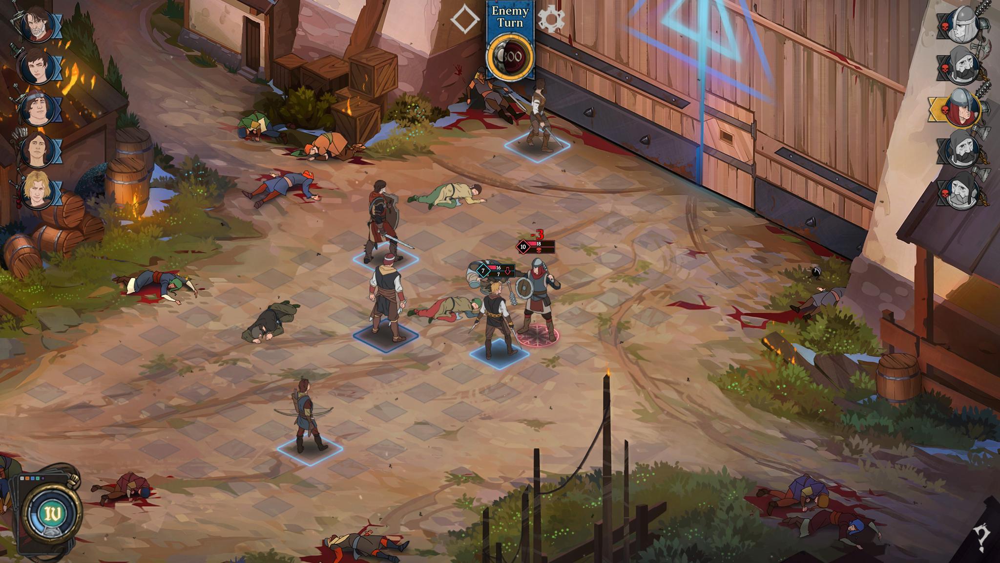 乍一看,《诸神灰烬》的战斗系统似乎和大多数回合制策略游戏差不多,但是两者之间还是有一些巨大的差异。比如,回合并不是在角色间进行轮换,而是在队伍间进行轮换。这意味着在你的回合可以让你所有的角色发动攻击,之后才是敌方队伍进行攻击。这样的话,你就可以随意调整角色的出招顺序,而不用限制在一个固定的顺序中。