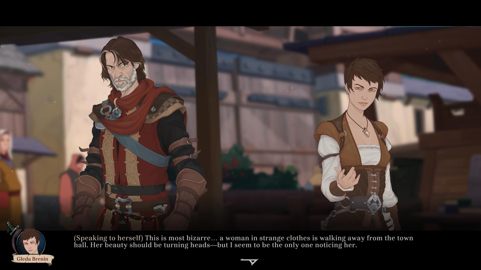 笔者觉得试玩版的开场动画可能跟正式版本的不太一样。因为在短片过后,你会发现自己在一个小村庄里,操作的角色也不是动画里的神,两者之间也没有任何联系。在大多数这类游戏里,玩家都会控制一个角色,周遭的事件和人物都会因为你的选择而变化。但是在《诸神灰烬》中,玩家可以操控多个角色,并为他们选择对话选项或者帮他们做决定。
