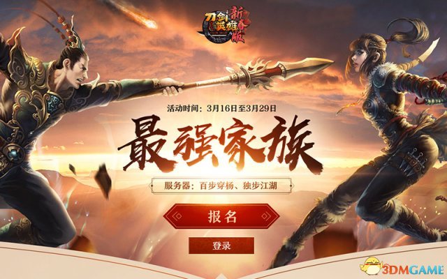 《刀剑英雄》(畅游旗下)2018年首部资料片“新春版”即将于3月16日激爽公测。全新经脉系统、超人气吃鸡玩法“修罗士道”、新护符拓展位联袂而来,更有史无前例的超级福利活动,为全民送福利!最强家族、玩新服赚老服、未老宝刀、全民红利等福利活动全开,快来一起赚福利吧!