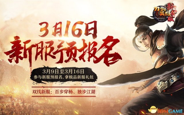 3月16日,两组双线五区新服【百步穿杨】和【独步江湖】公测同日开启。