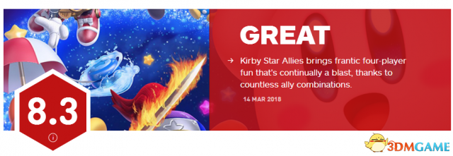 IGN日前发布了《星之卡比 新星同盟》的游戏评分,最终这款由HAL研究所开发,任天堂发行的Switch游戏获得了8.3分的不错成绩,此外游戏支持中文,将于3月16日发售。