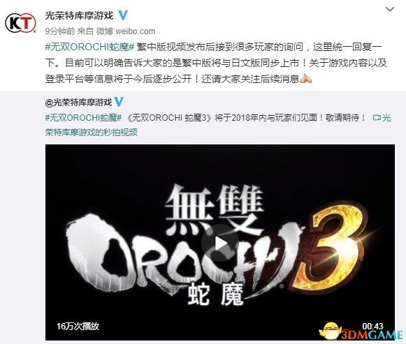 近日光荣正式公布了《无双大蛇3》,今日官方确认《无双大蛇3》繁中版将与日文版同步上市,关于本作的游戏内容以及登陆平台等信息将逐步公开。