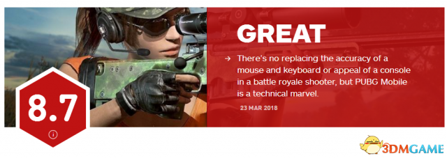 IGN日前公布了《绝地求生》手游(绝地求生:刺激战场)的评分,最终这款由腾讯光子工作室开发的移动版《绝地求生》获得了8.7分的高分,它原汁原味地保留了PC和主机版《绝地求生》内容,它是一个卓越的技术奇迹。
