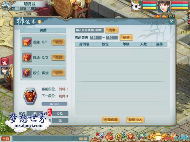 《梦想世界》2018首个全新内容“穹顶之争”今日全面上线,作为全新内容的核心玩法,本次天界排位赛将持续打响16周连环竞技赛,每周二晚8点至10点期间,等级大于30级的玩家可前往明月城斗战金仙处,报名参与活动。不同服务器的玩家可以跨服创建房间组建队伍或加入房间进入队伍,系统将根据玩家的等级阶段,按30-49/50-69/70-89/90-110/111-135/136-150/150以上/7个等级段,匹配5v5战斗,不同等级阶段会匹配实力相当的队友,匹配时将按照房间内最高等级的角色进行匹配,从而展开紧张刺激的排位对决!