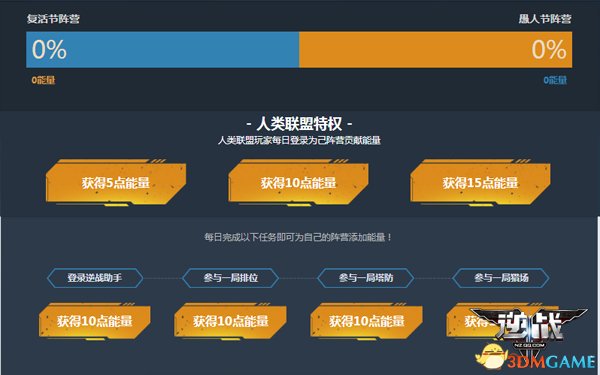 选择完阵营后,玩家需要在活动期间通过完成指定任务,为己方阵营贡献能力。任务包括了活动内的每日登录,每日任务如登录逆战助手APP、参与一局排位等。