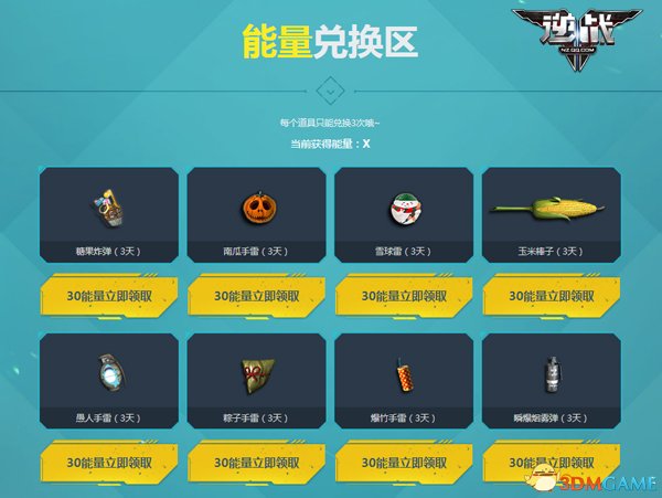 不仅如此,小能量还有大用途,玩家集齐的能量还可以在能量兑换区内直接兑换游戏道具,如愚人手雷(3天)、爆竹手雷(3天)、玉米棒子(3天)等。