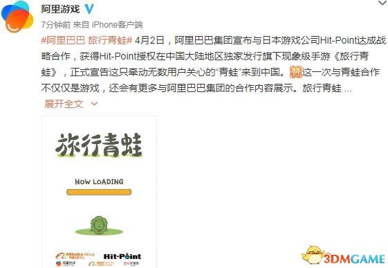 4月2日,阿里巴巴集团宣布与日本游戏公司Hit-Point达成战略合作,获得Hit-Point授权在中国大陆地区独家发行旗下现象级手游《旅行青蛙》,正式宣告这只牵动无数用户关心的“青蛙”来到中国。这一次与青蛙合作不仅仅是游戏,还会有更多与阿里巴巴集团的合作内容展示。旅行青蛙即将出发游览中国的大好河山,不来求个花式偶遇吗?
