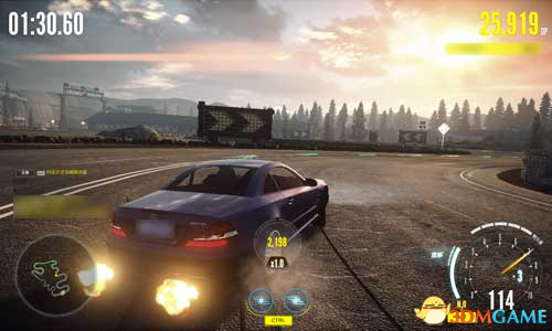 需要注意的是,漂移赛的最终名次不是由第一个冲过终点线来决定的,是通过漂移过弯中累计的漂移点数来决定的,只要在规定时间内冲过终点并拿到最高的漂移点数就能获胜。这里也有一些小技巧分享给大家,那就是漂移点数是可以通过延长漂移时间来获得倍数增长的,最高两倍的点数增长可以直接将我们的漂移点数拉到最大。