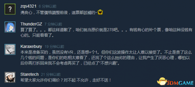 玩家对此态度也不一致,有的玩家表示“不管价格调整前后,这票都该补的”,也有玩家对于调价行为表示“走好不送!”