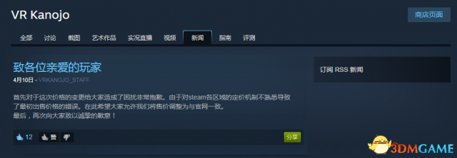 《VR女友》Steam官方页面不久前更新了消息,官方正式回应了游戏售价上涨问题,主要原因是I社对Steam各区域定价机制不熟悉,官方希望把价格调整为与官网一致(50美元)。