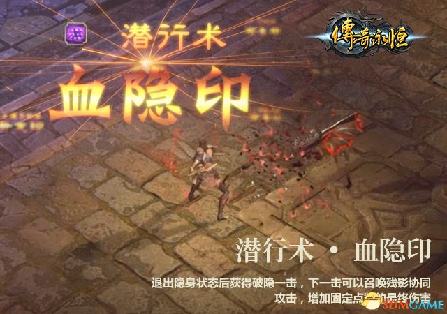 潜行术·血隐印:退出隐身状态后获得破隐一击,下一击可以召唤残影协同攻击,增加固定点数的最终伤害。
