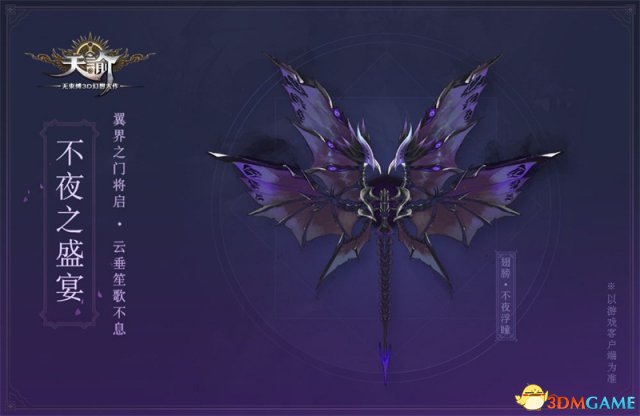 翼界之门将启,云垂笙歌不息。无束缚3D幻想大作《天谕》4月新资料片【翼之曙光】即将开启,同期将上线“不夜之盛宴”系列新外观。包括了时装、时装武器、头饰、悬饰、步尘还有新翅膀等!为了配合新资料片即将开放的魔皇主线剧情,这次系列外观是《天谕》外观里少见的暗黑系,也为偏爱暗黑风格的玩家带来更多搭配空间。