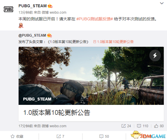 1.0版本的11轮更新很快就要在测试服上线了!请大家在 #PUBG测试服反馈# 给予对本次测试的反馈。我们会验证本次测试内容之后,会把内容更新至正式服。具体的更新日期,将通过后续公告给大家通知。