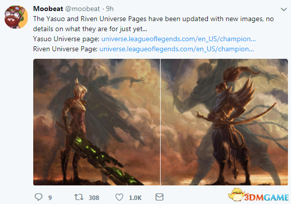 国外玩家Moobeat日前为我们分享了《英雄联盟》新消息,美服亚索和瑞文的故事页面已经更新,加入了一些新的帅气插画,目前官方没有给予细节说明。从图片来看,亚索和瑞文的新插画是同一风格的,两张图并在一块可以看出他们是在进行宿命对决。
