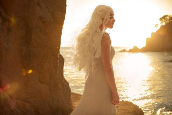 近日,国外美女Coser NERO放出了《权力的游戏》龙妈Cos,图中银发妹子满脸娇媚,在夕阳映衬下,光看侧脸恍若丹妮莉丝·坦格利安本人驾临,场景唯美还原度也相当高。