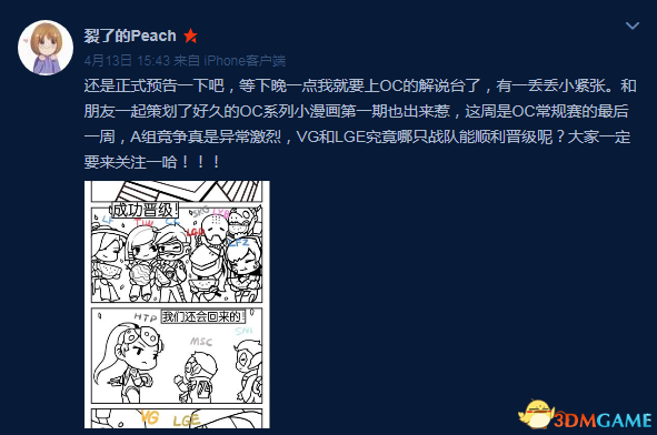 在上周周末时,守望电竞圈中有名的美女解说桃叽,发表微博透露自己将登上守望先锋挑战者系列赛(英文简称:OC)的解说席,搭配守望先锋老将木子,解说第一赛季常规赛的收官之战。这个消息传出后,很多玩家都表示一定来关注本次的比赛,大概美女人气都很高。