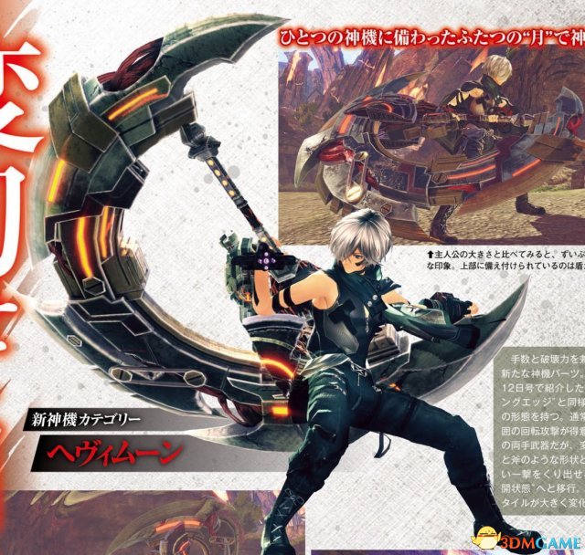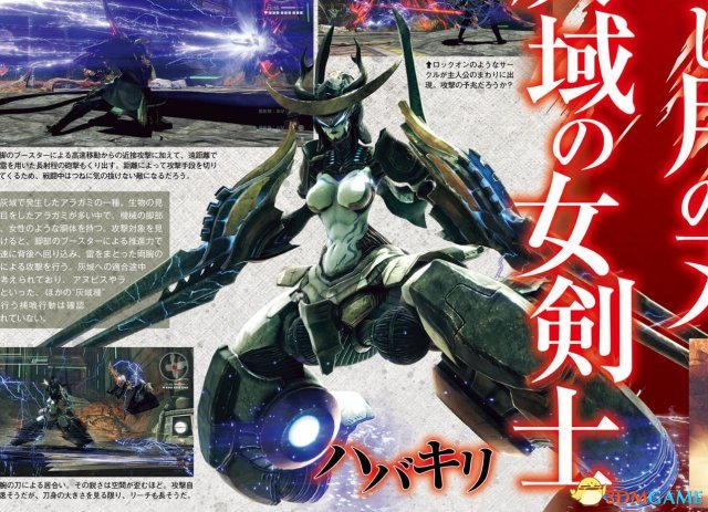首先是名为Hapakiri的荒神,它可以浮空并以双刃攻击,攻击迅速且造成放电。第二个公布的内容是名为“重月”的新武器,与之前所见的武器类似,该武器也有两种形态,平常是新月形状的武器,提供范围巨大的弧形攻击,在变形后武器则是一把可以使出强力攻击的斧子。