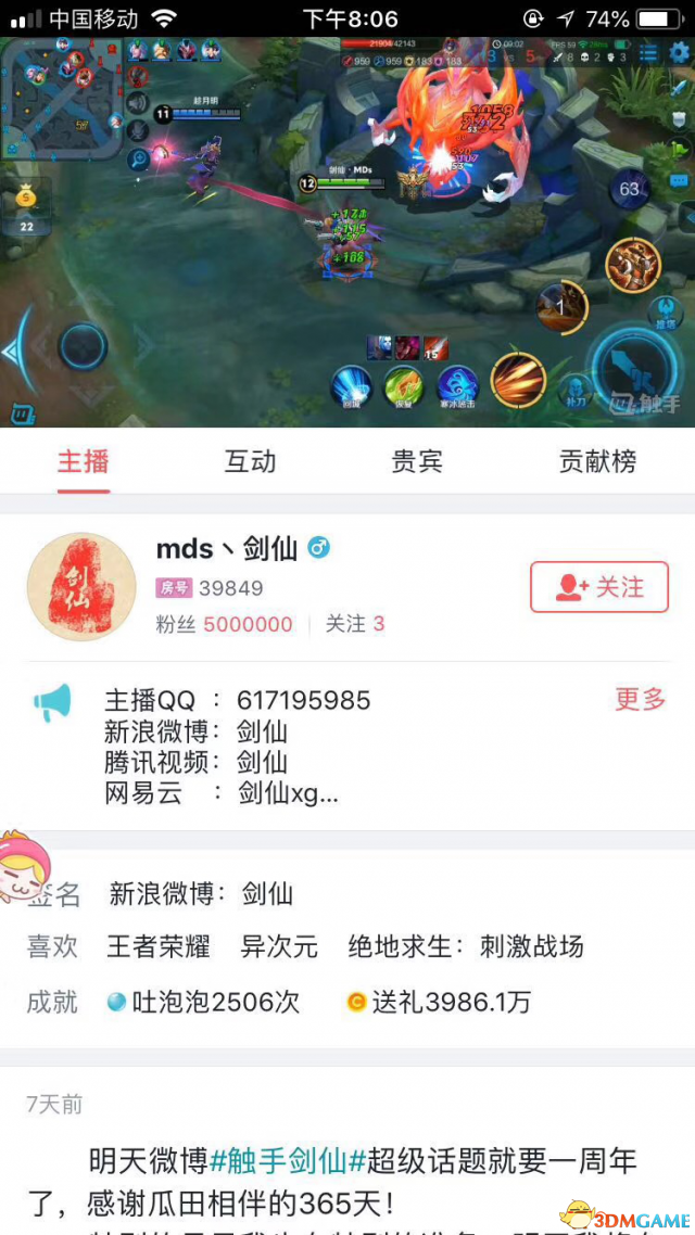 备受粉丝喜爱的王者荣耀主播触手剑仙最近风头正足,多个国服第一和天梯榜全区第一的傲人成绩让他吸引了越来越多的玩家关注。再加上他俊美的外形和活泼有趣的直播风格,被称作“大西瓜”的剑仙拥有了无数“小西瓜”迷妹,可以说是羡煞旁人。