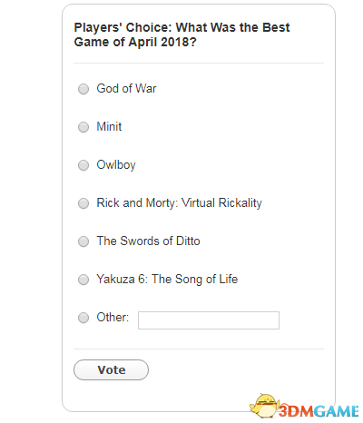 4月的玩家选择奖投票也快结束了,虽然结果尚未公布,但已经不重要了,《战神4》早已预定4月的玩家选择奖。