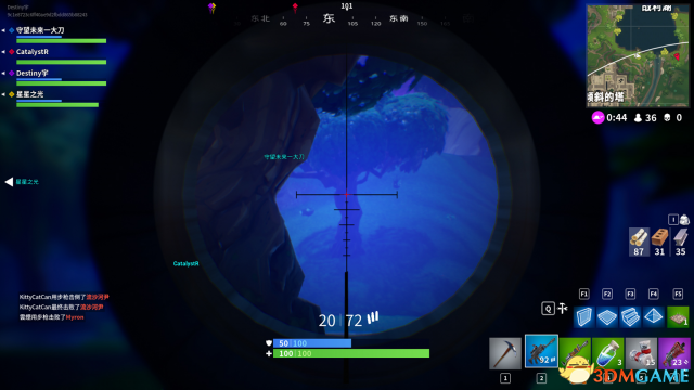 利用这些优势,玩家可以人为的改变自己与敌人间的地理差异。再结合《堡垒之夜》中花样繁多的武器——喷子、重狙、冲锋枪、火箭发射器、榴弹枪等,游戏中处处可见一些超越玩家常识认知的骚操作。比如骑着火箭炮飞跃半张地图,用“粘弹”打出一波脑洞大开的击杀,这些都是《堡垒之夜》中独有的乐趣。