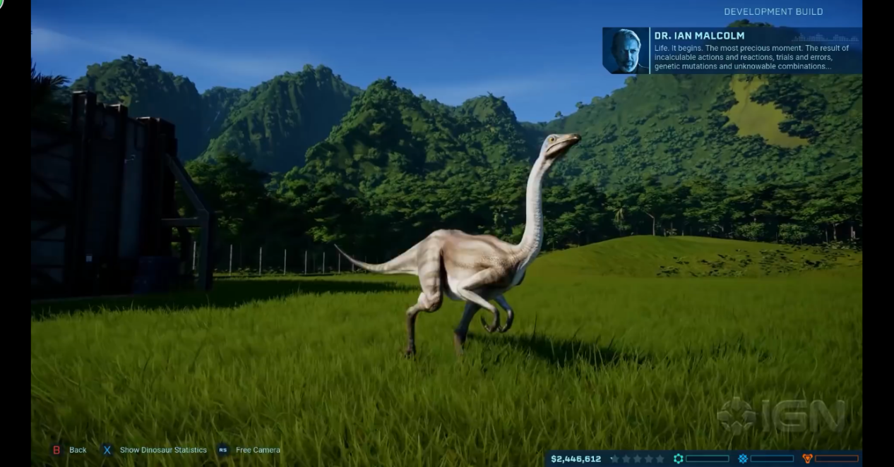 在此期间,伊恩·麦克勒姆博士会不断地出来吐槽。他指出了这个项目潜在的风险:“真是充满野心的谋划呀。复活灭绝的生物,玩弄自然的规律,这完全有可能会走上歧途。”也会在你培育出第一只恐龙后,发出由衷的赞叹:“生命的开端,多么美妙的时刻。我们终于创造出了这个有血有肉,还能思考的生物。它是如此的真实、清晰和独特。”