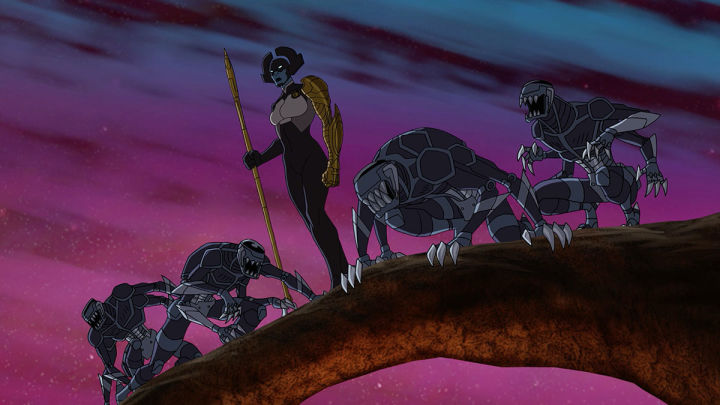 暗夜比邻星(Proxima Midnight)-亡刃将军的妻子,非常强壮,是黑暗教团内最具天赋的战士。她的长矛能够发射死亡光线,而且几乎从不失手。