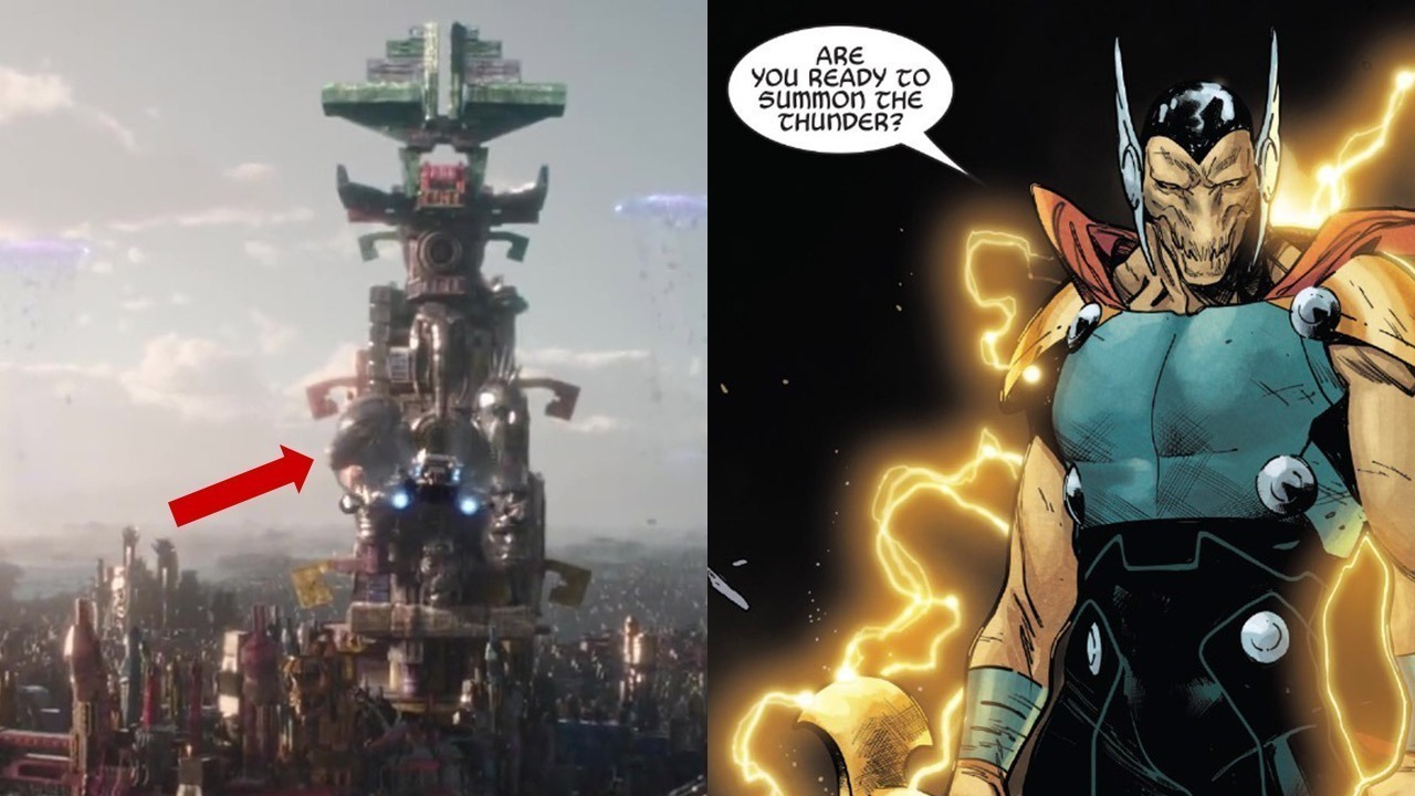 无论如何,风暴锤的到来看上去都是一件自然而然的是事情。电影《诸神黄昏》引用了大量西蒙森漫画中的设定,加入了海拉(Hela)、苏尔特尔(Surtur)、史克奇(Skurge)等角色的剧情。事实上,就连太空难民这个设定都可以在《雷神》漫画中找到原型。贝塔·雷·比尔所扮演的,正是他幸存族人的守护者。他一直在寻找一片新的家园,因为他们的母星已经被苏尔特尔给摧毁了。这难道不是和《雷神3》的结局一模一样吗……