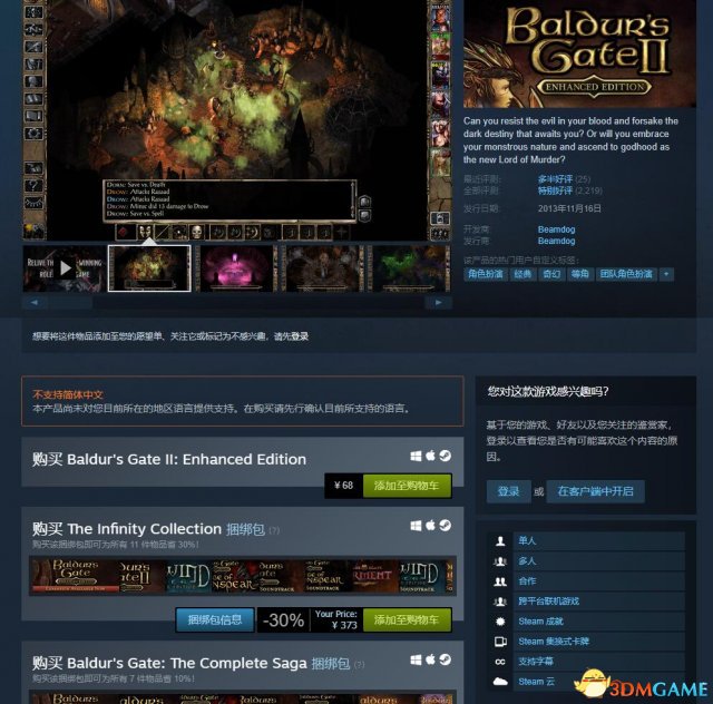 《博德之门2:增强版》国区38元,最近评测是“多半好评”。
