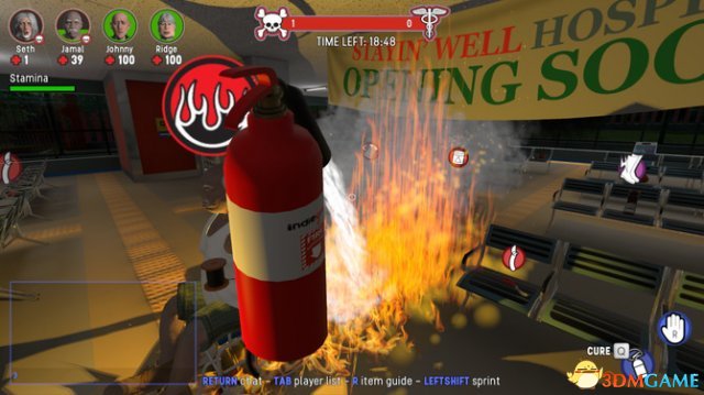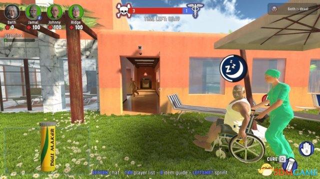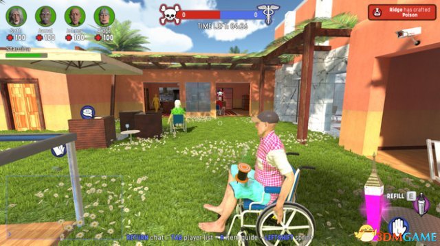 ·《活下去》(Stayin' Alive)游戏中,玩家可以加入一言不合就自杀的老人阵营,也可加入拼命不让老人作死的医护人员阵营。老人们可以在地图(医院或养老院)上搜集道具,并巧妙的组合各种道具,结束自己的生命。比如找到汽油+打火机,再跑到草地上自焚。