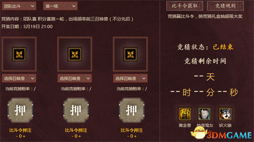 团队比斗竞猜第三场 5月21日12:00--6月2日12:00