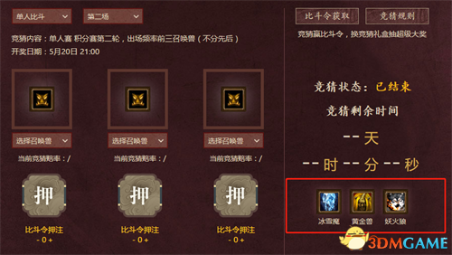 单人比斗第二轮出场率前三召唤兽开奖图:冰雪魔、黄金兽、妖火狼