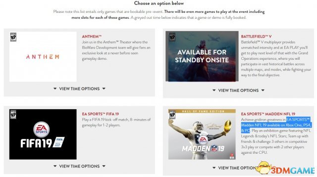 除了《Madden NFL 19》外,EA Play官网上还公布了其他三款游戏的E3活动安排。