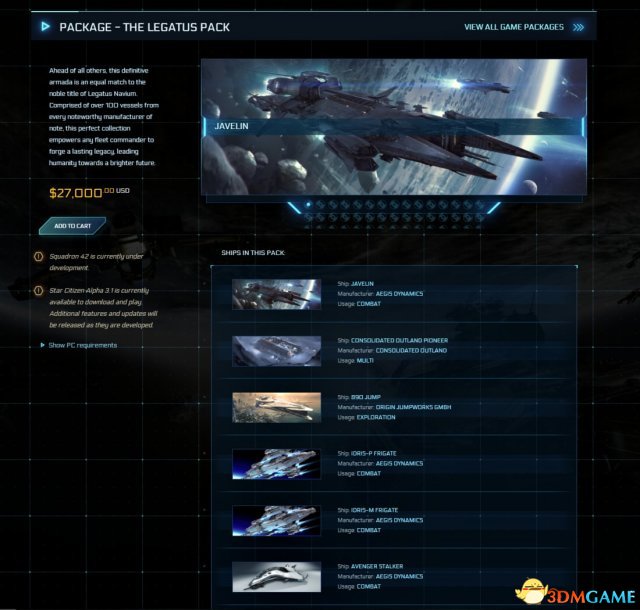 虽然说国内游戏开发商在技术实力上不如欧美和日本的大厂,不过在收费方式方面却一直引领业界潮流。今天,《星际公民》开发商CIG宣布了该游戏的“豪华DLC”计划,据悉这一价值两万七千美元的DLC包仅有“高级玩家”才可享用。