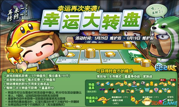 我转~我转~我转转转~幸运大转盘又开启啦!本次加入了星光闪耀的星星道具和红宝石魔法针,等你来赢取!只要在竞技场、生存模式、星星争夺战、家族战就可以获得转盘币。马上投币转出你的幸运吧!