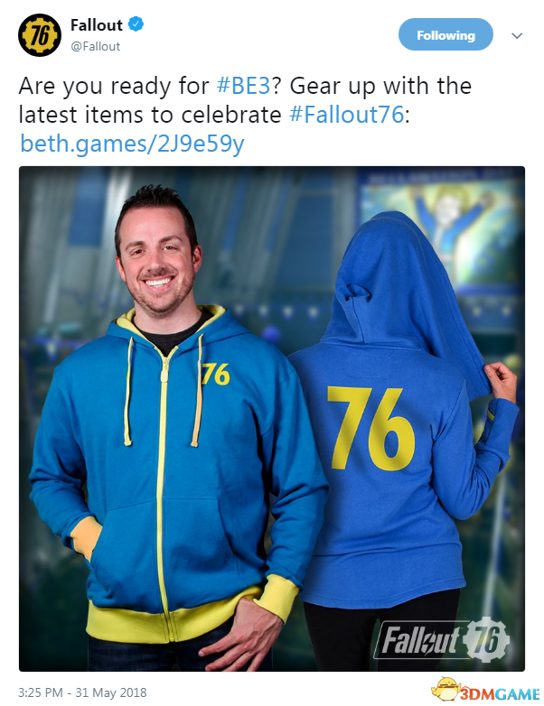 辐射官方:准备好B社E3发布会了吗?穿起来最新的服装庆祝《辐射76》发布。