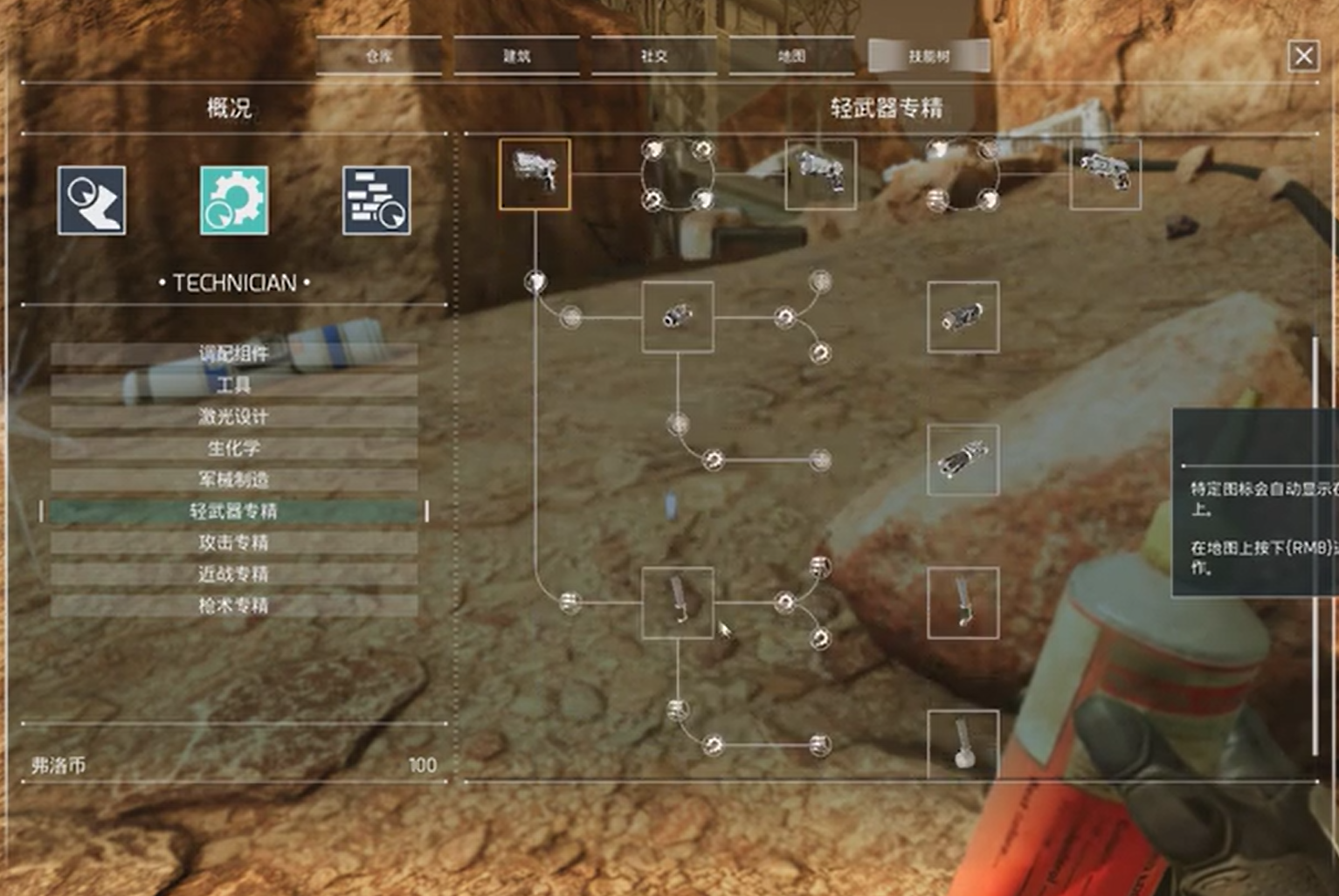 就在我一脸懵逼地对着复活点发出我是谁,我在哪,为什么他的装备看起来比我厉害那么多,等诸多疑问的时候。玩家群里的消息解答了我的问题。原来,在游戏中,玩家可以搜集资源,点科技树,来增强自己的装备和护甲。